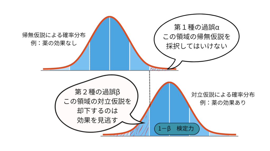 この確率は β と表され、1 − β は「検出力(Power)」=効果を見抜く力です。
