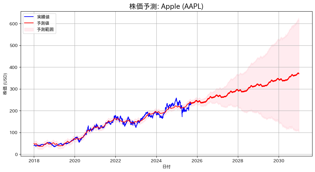 plt.title("株価予測: Apple (AAPL)", fontsize=16)