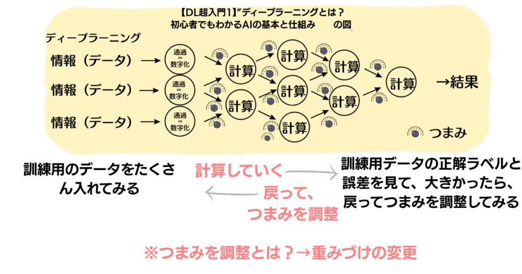 ディープラーニングは次のような仕組みで成り立っています。